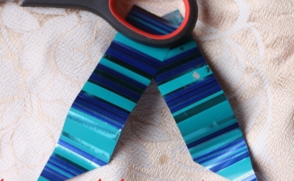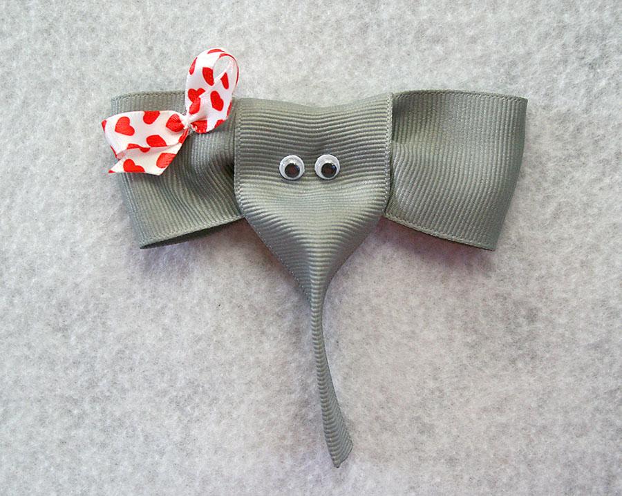 Вам потребуются две ленты: широкая и узкая, глазки для слоника и клей.