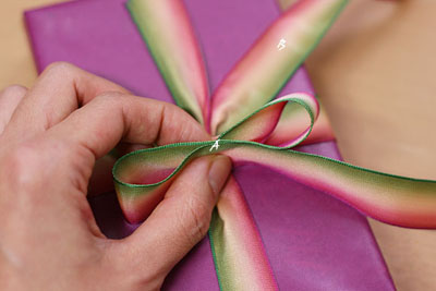 Завязывать красивые банты вы научились, но теперь встает вопрос, как прикрепить эти банты на коробку с подарками. Нет ничего проще, и вы сейчас в этом убедитесь.