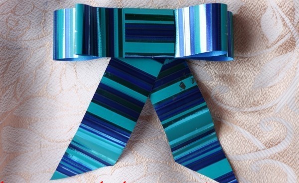 Такой бант хорошо получается из любых лент, в том числе и бумажных.