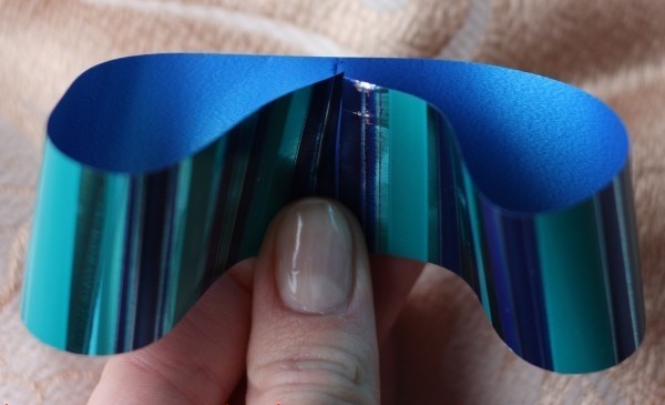 «Хризантему» можно сделать только из жесткой бумажной ленты, которой упаковывают подарки и цветы. Делается бант так же, как и «Махровый цветок», но прежде чем начать расправлять бант, «лепестки» цветка надо надрезать по пунктирным линиям со стрелкой.