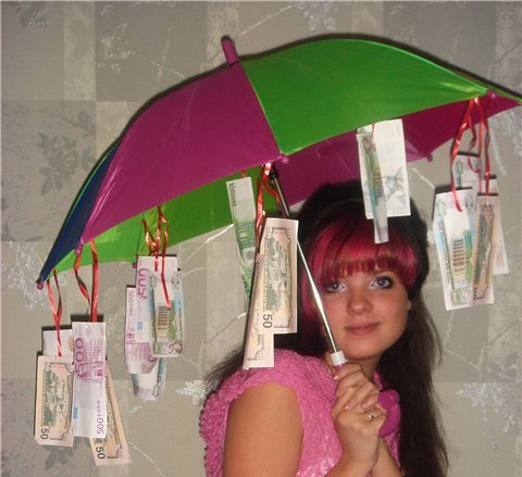 Прекрасным подарком станет денежный зонтик, который защищает и от непогоды, и от неожиданного повышения цен
