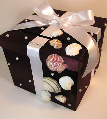 Можно сделать обычную упаковку оригинальной, добавив атласную ленту и наклеив бусины и ракушки.