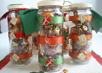 Некоторые подарки будут неплохо смотреться в украшенной на ваш вкус стеклянной банке.