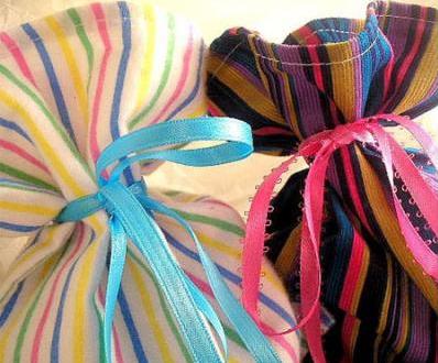 Интересно получить подарок в мешочке из гофрированной бумаги или ткани.