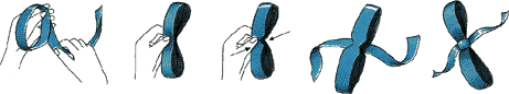 Для изготовления банта используется длинная лента (бант), из которой делается несколько петель, скрепляемых посередине.