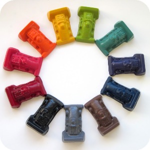 Из мелков разных цветов можно сделать много разноцветных машинок.