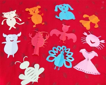 А теперь пришла очередь вырезать из цветной бумаги разных зверей, птиц и насекомых.