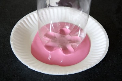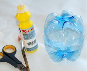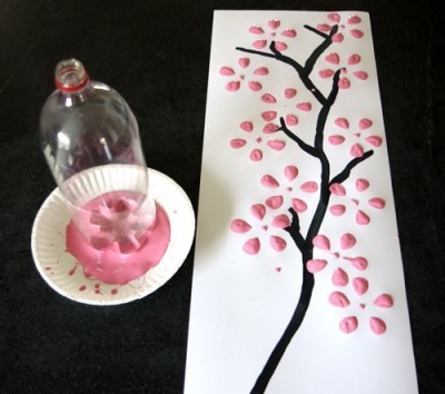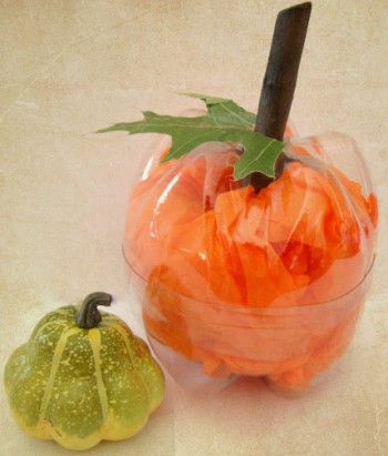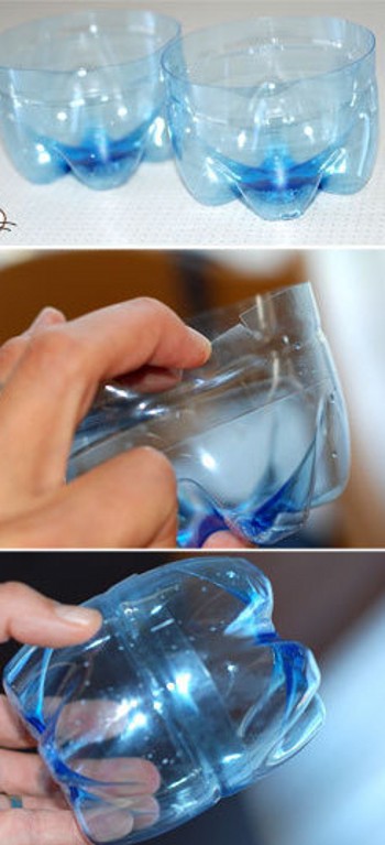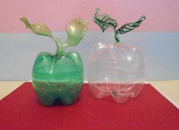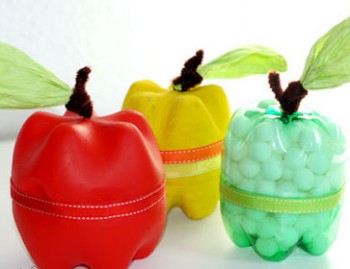Из пуговиц можно сделать забавную гусеницу и посадить ее на яблоко из пластиковой бутылки.