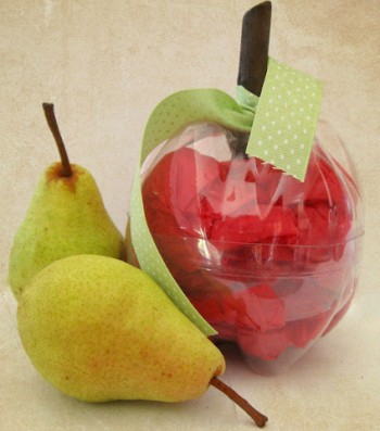 При желании место склейки двух половинок яблока можно замаскировать тонкой ленточкой.