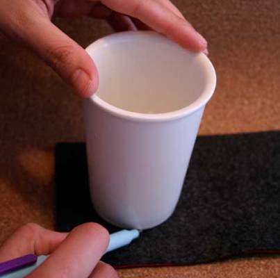 На верхнем куске фетра рисуем окружность и вырезаем ее.