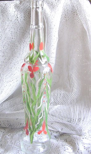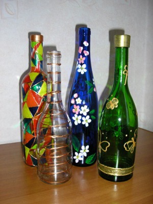 Давайте сначала попробуем расписать бутылку «девчачьими» узорами, а уж потом, натренировавшись на цветах, можно будет перейти и к «мужским» мотивам.