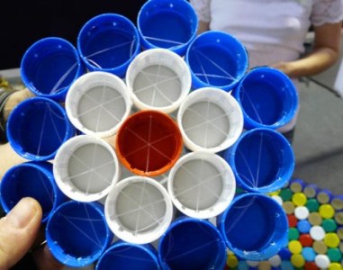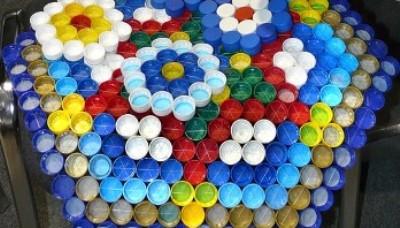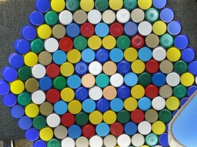 Рисунок лучше подобрать заранее. Для этого все крышки надо разложить на ровной поверхности и составить их них узор.