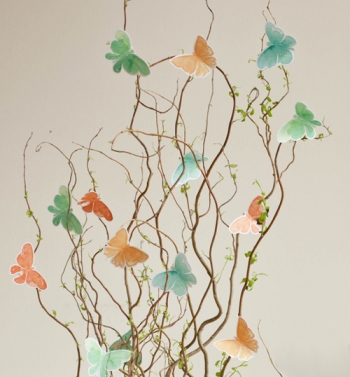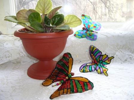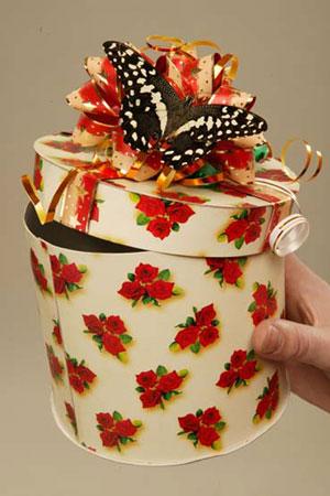 Осенью или зимой, когда солнышко светит редко, а за окном или дождь, или снег, приятно получить в подарок кусочек лета – разноцветных бабочек. Оформить такой подарок можно в виде самодельной коллекции, посадить бабочек на веточки, комнатное растение в горшочке или украсить ими букет.