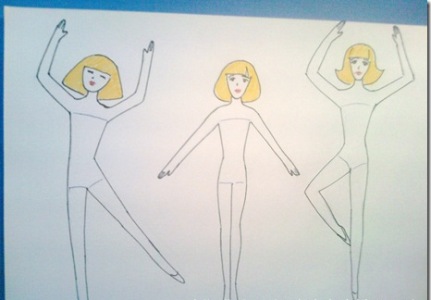 Нарисуйте на плотном листе бумаги фигурки девочек-снежинок и раскрасьте их.