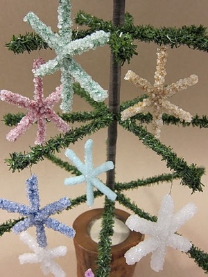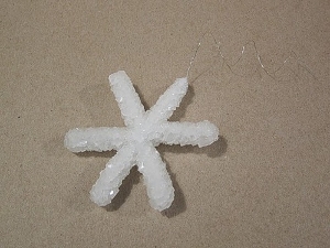 Вырастить можно не только снежинку, а все, что угодно. Главное, сделать из ершиков фигурку, а потом опустить ее в раствор буры.