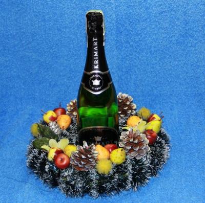 Таким венком можно украсить бутылку шампанского на праздничном столе.