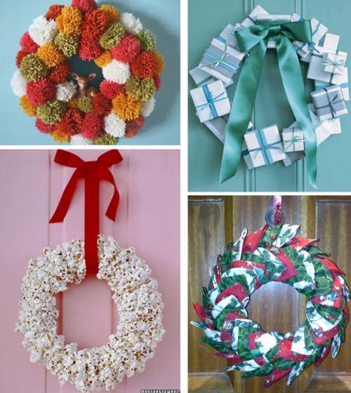 Материалами для изготовления рождественских венков могут стать и бабочки, и ватные диски, и шишки, да видимо все, что можно найти в доме.