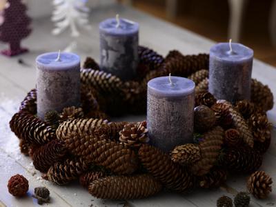 Таким венком хорошо украшать не только квартиру, но и праздничный стол. Он не осыплется, не облетит и будет радовать своей красотой на протяжении всех рождественских праздников.
